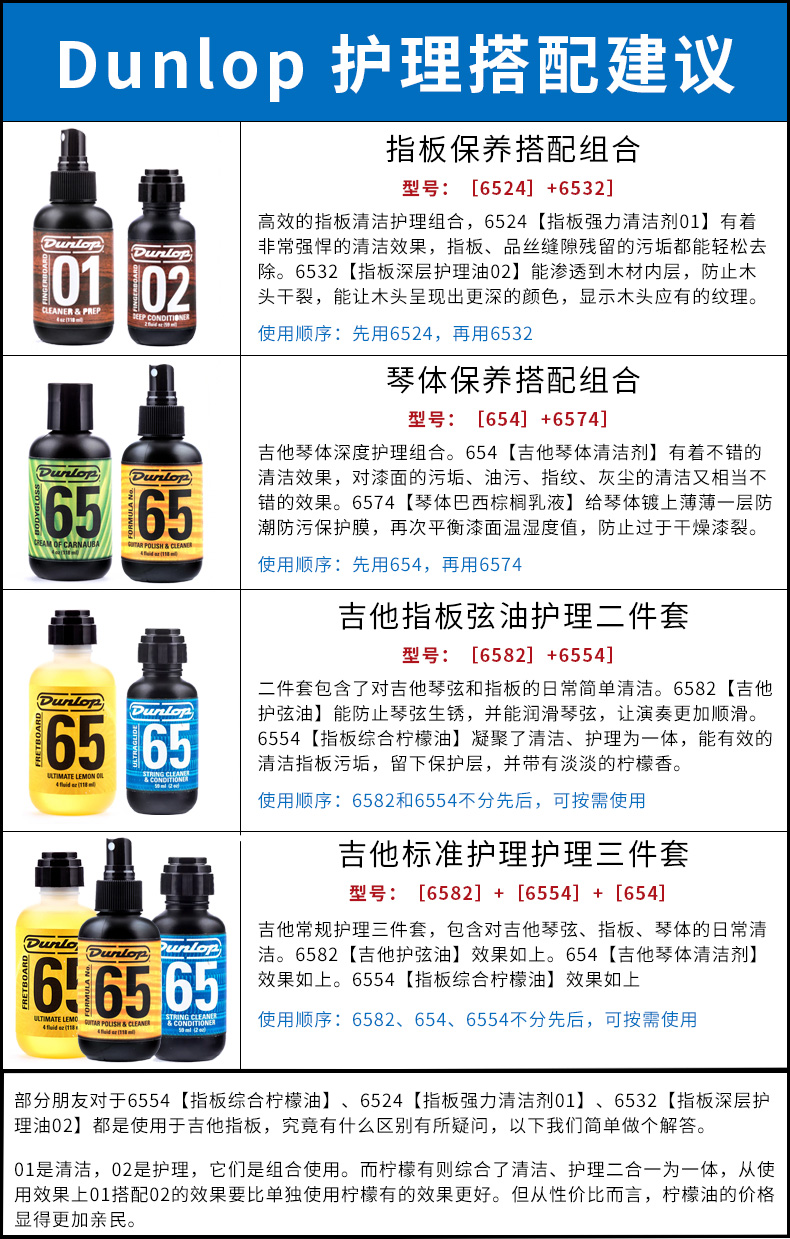 6582 String Oil 6554 Lemon Oil 654 Glazing Cleaner 654 Glazing Cleaner (small bottle portable package) 6574 Carnauba Liquid 6524 Fingerboard 01