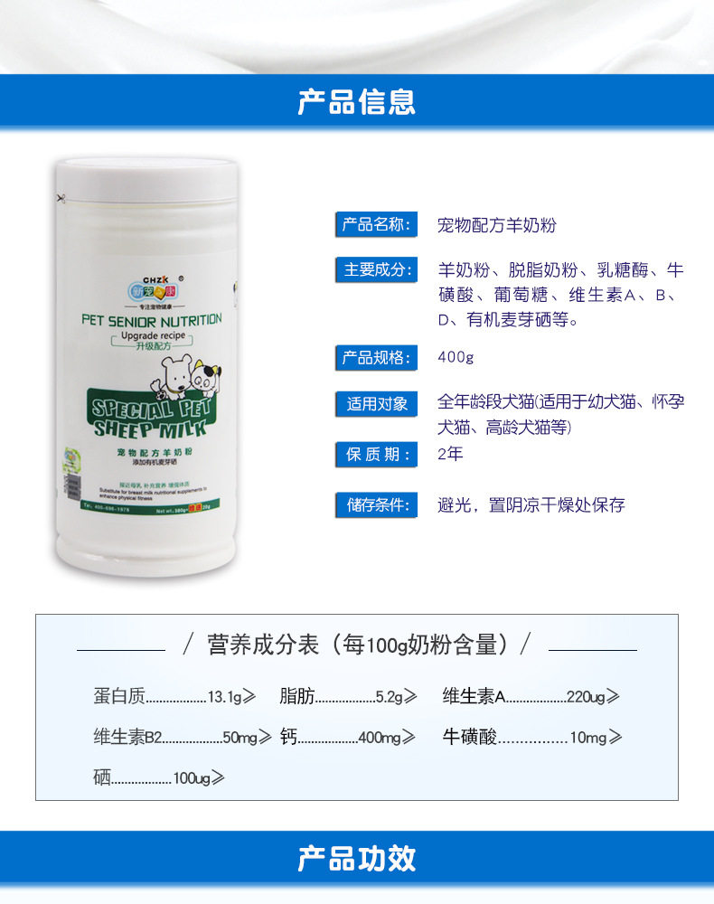 New pet health pet special goat milk powder 400g puppy puppy newborn teddy nutrition for cats