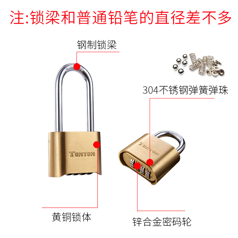 Brass code lock padlock Home Fitness Room Cupboard student Dormitory Warehouse Outdoor Waterproof Rust-proof Long Beam Door Lock