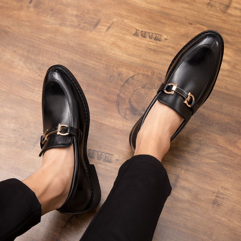 Pointed leather shoes men's foot pedal set foot Korean version tide 100 hitch casual heightening leather shoes Inn hair stylist Chauer shoes