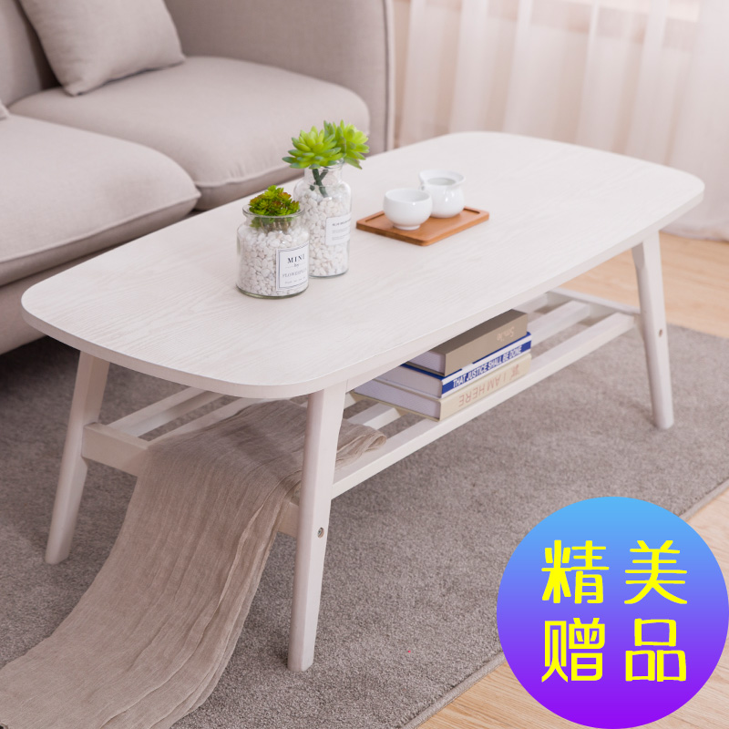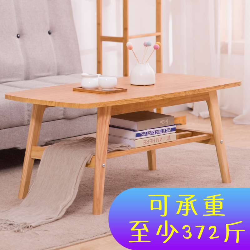 Nordic style solid wood living room coffee table simple modern log double-layer coffee table small apartment simple tea table coffee table household