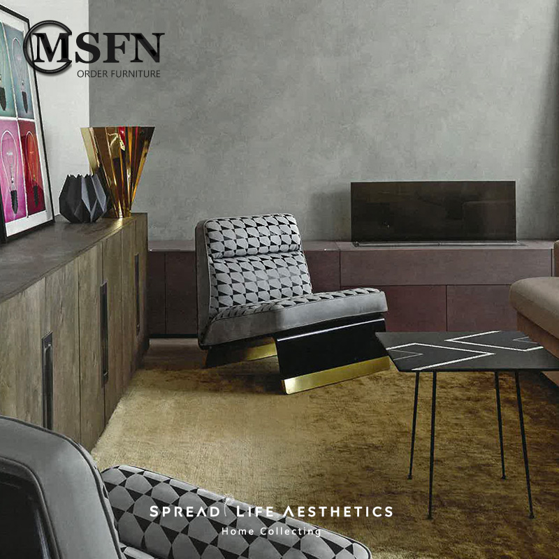 Masfino Light Luxury Modern Ultrafiber Black and White Texture Lense Metal Leisure Chair Living Room Sofa