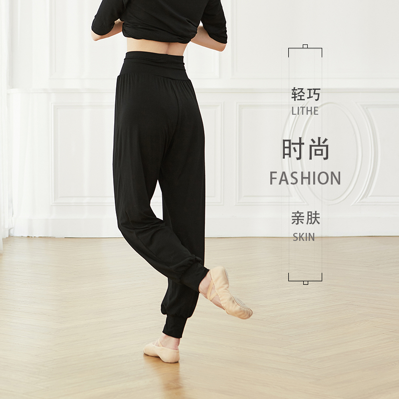 Dance Romance Black Dance Practice Pants Woman loose with high waistline Elastic Radish Light Cage Pants Little Feet
