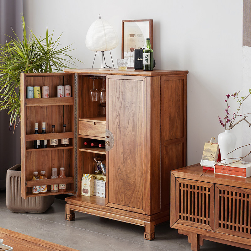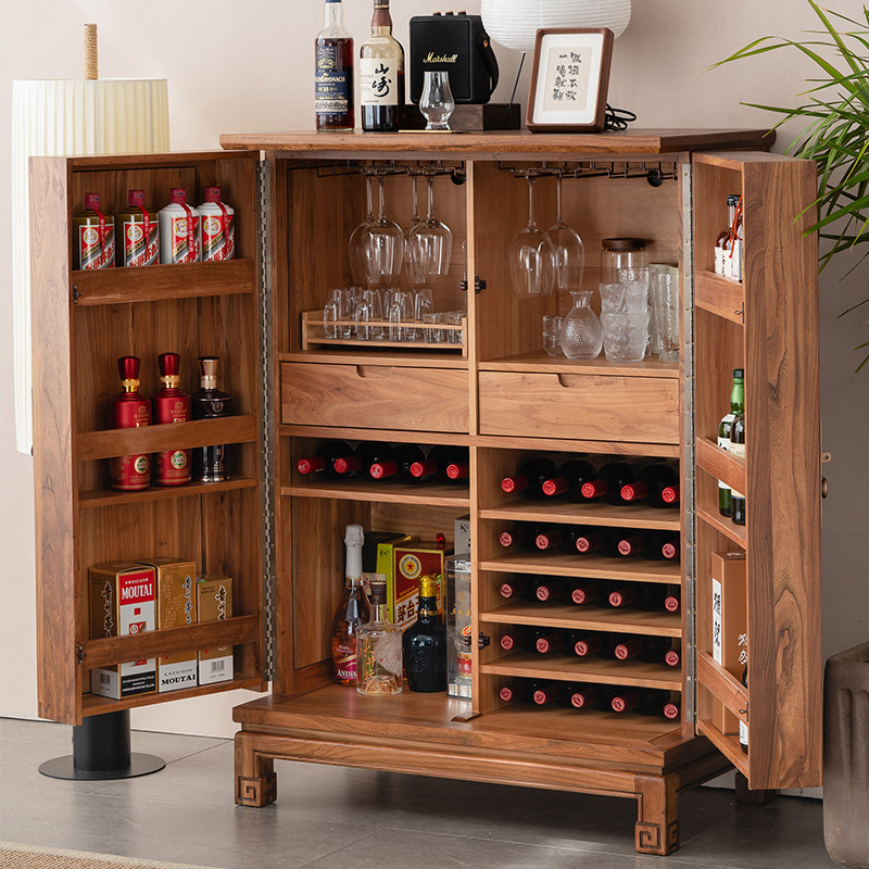 New Chinese wine cabinet full solid wood home living room cabinet leaning against wall dining room Chinese small wine cabinet Nordic red wine dining cabinet