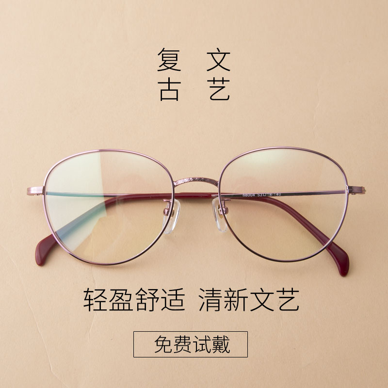 Round frame glasses female retro fashion glasses frame Korean version ultra light myopia glasses flat light fit radiation protection big frame tide