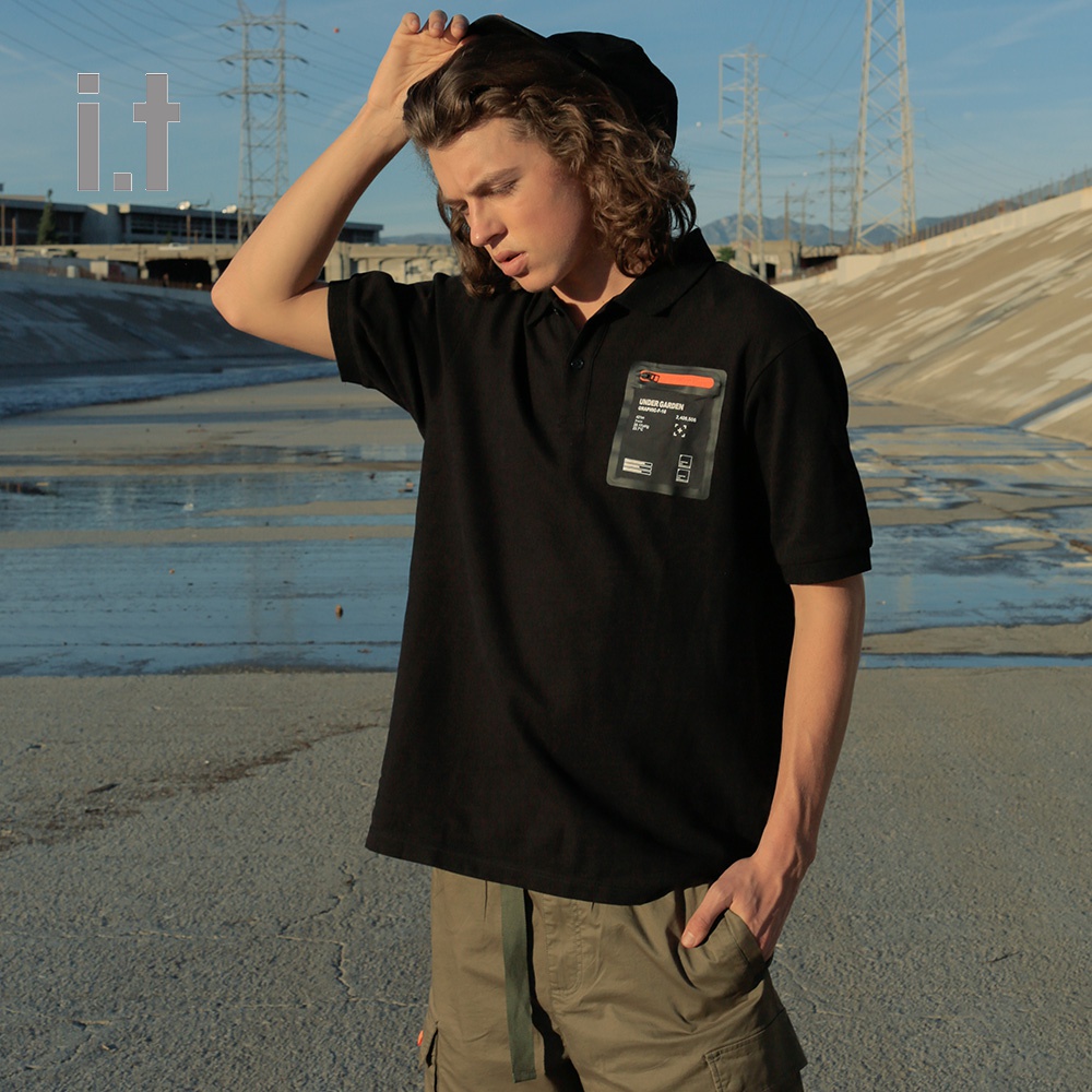 it UNDERGARDEN Men's Student Short Sleeve Polo Shirt Spring Casual Print Pocket Decoration 2502XAC
