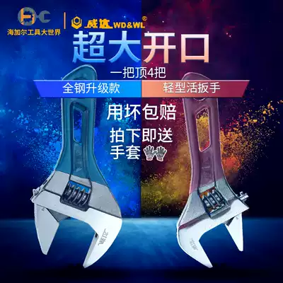 Weida adjustable wrench Short handle Bullet large opening bathroom live wrench Multi-function light live wrench