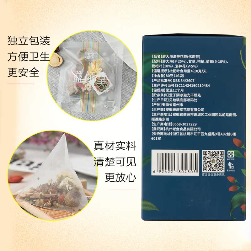 Old Jinmu Fang Fat Sea Roselle flower Chrysanthemum tea Wolfberry Loquat tea leaves Licorice herbal tea pack boxed combination summer