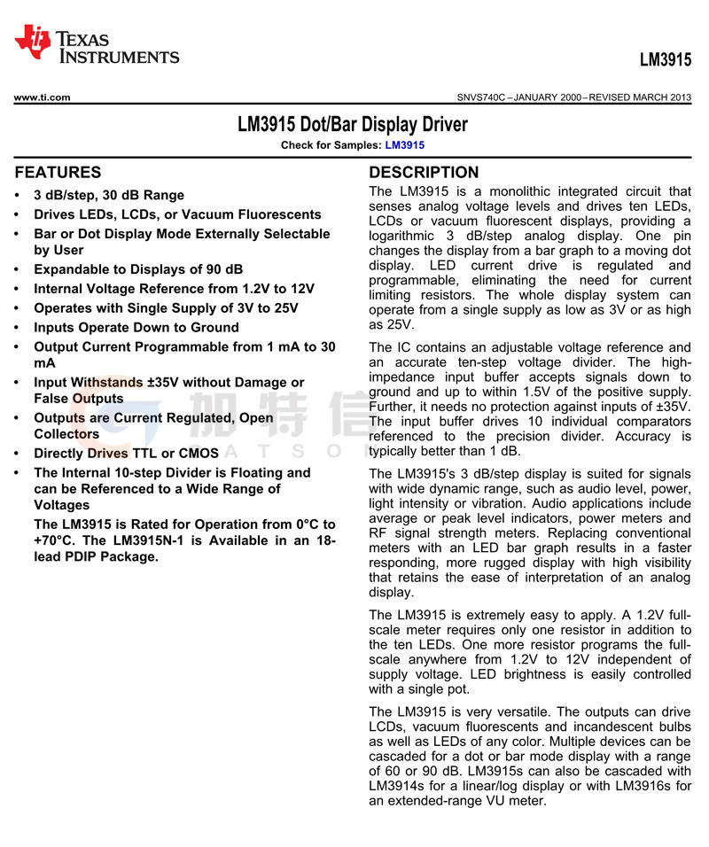 LM3915N-1 package DIP18 TI Texas Instruments original LED bar graph display driver IC chip