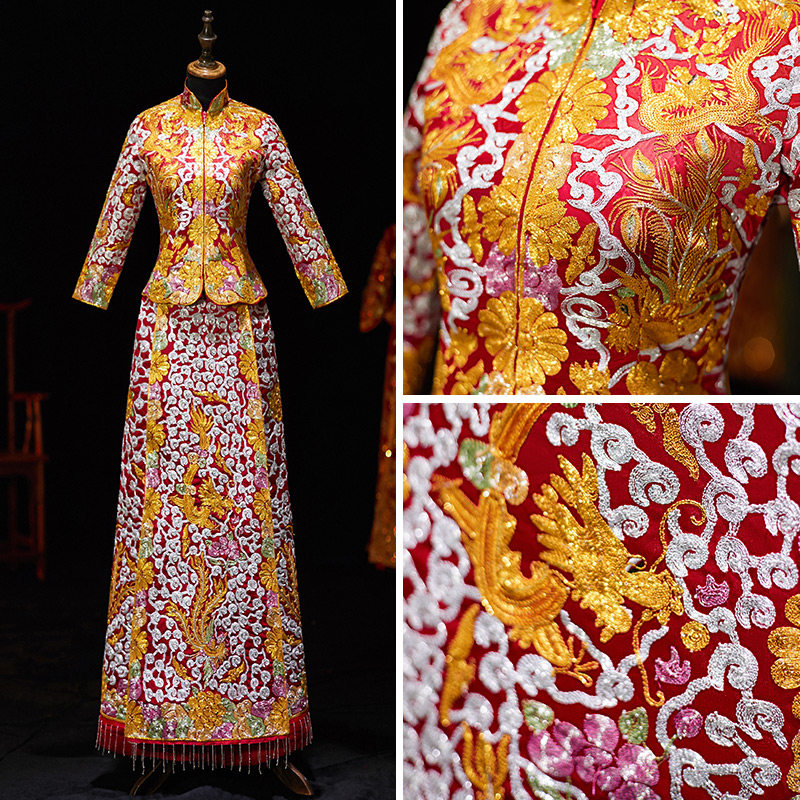 Winter Big Five Blessed Dragon and Phoenix Hangs 2021 New Wedding Clothes Chinese Wedding Xiuhe Clothes Clothes Royal Bride Xiuhe Clothes Clothes