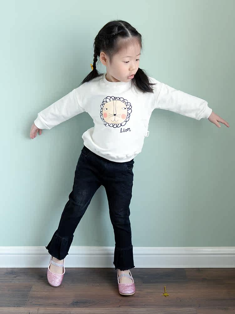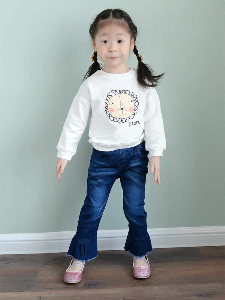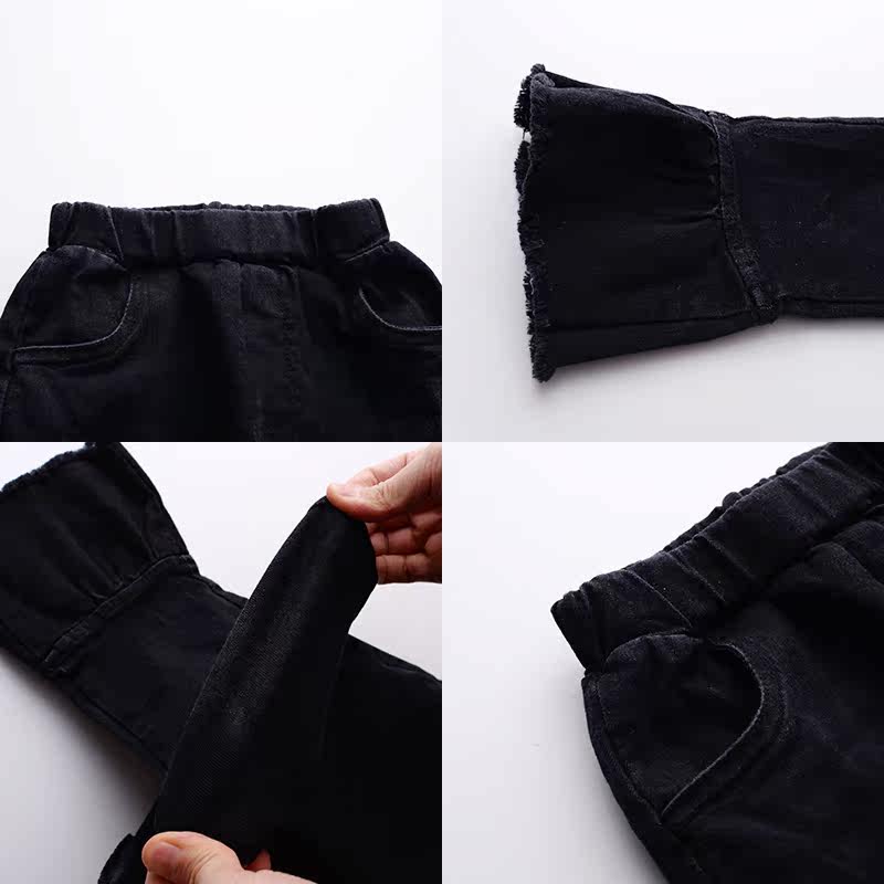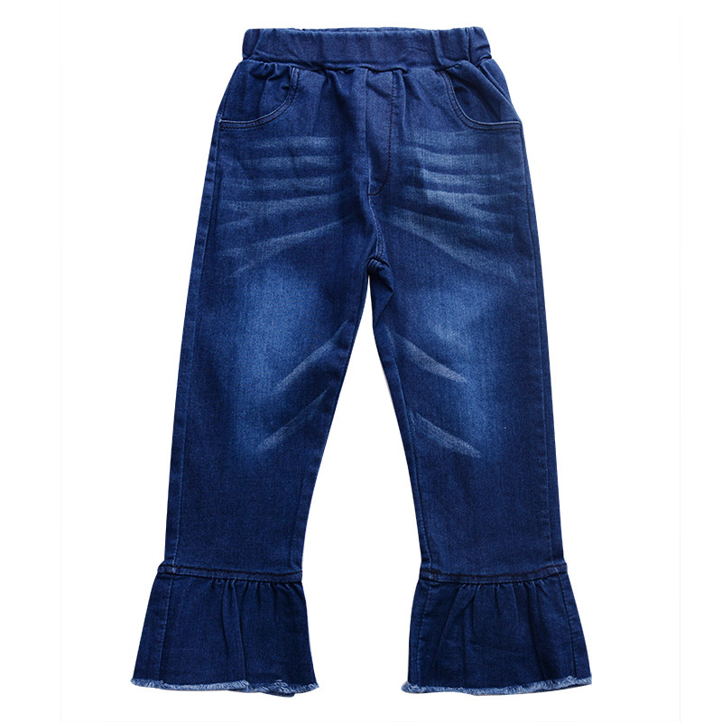 Girl jeans high elastic 2019 new spring children's pants CUHK Trumpeter Pants Ocean Wave