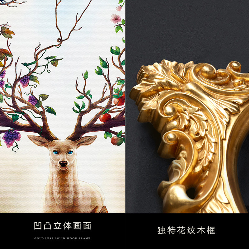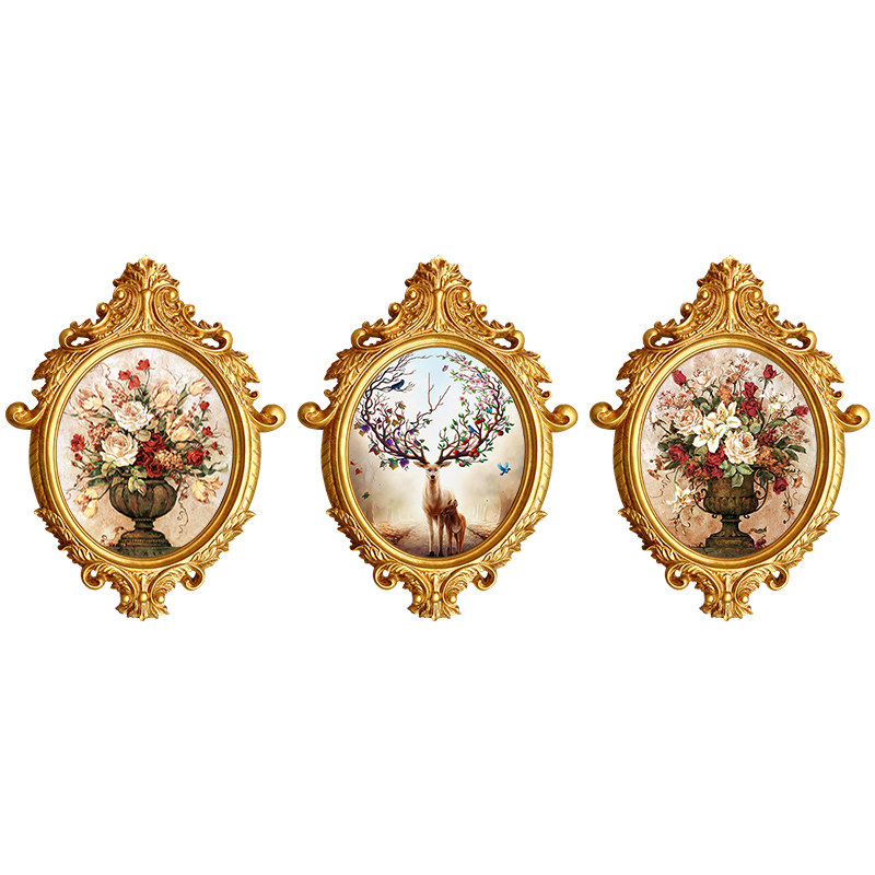 Eurostyle Living Room Decoration Painting Round Wall-hanging Simple sofa Background Wall Three Lianlian style floral deer oil painting