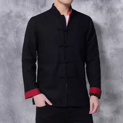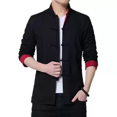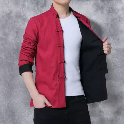 Double-sided wear Chinese style men's Young Men's collar coat Chinese buckle retro tunic short Hanfu