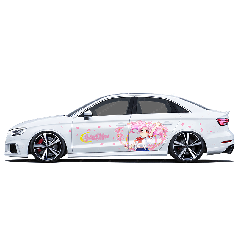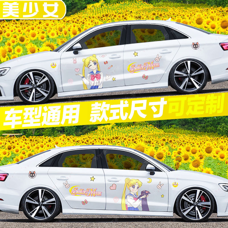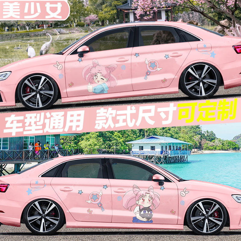 Sailor Moon Car Sticker White Sakura Sticker Cartoon Cute Girl Body Pull Flower Side Decoration Personalized Customization