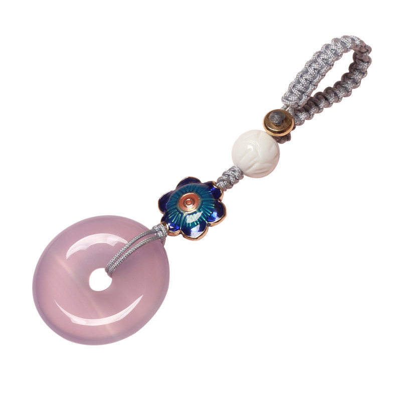 Purple chalcedony safe buckle girls car key chain pendant high-end hand-woven safe peach blossom original personality