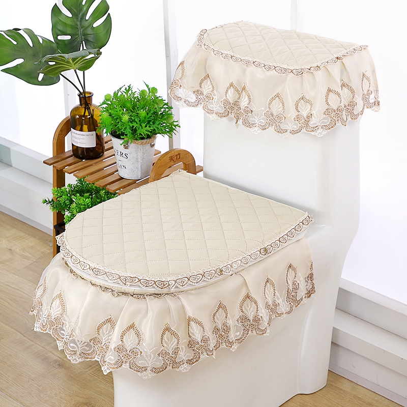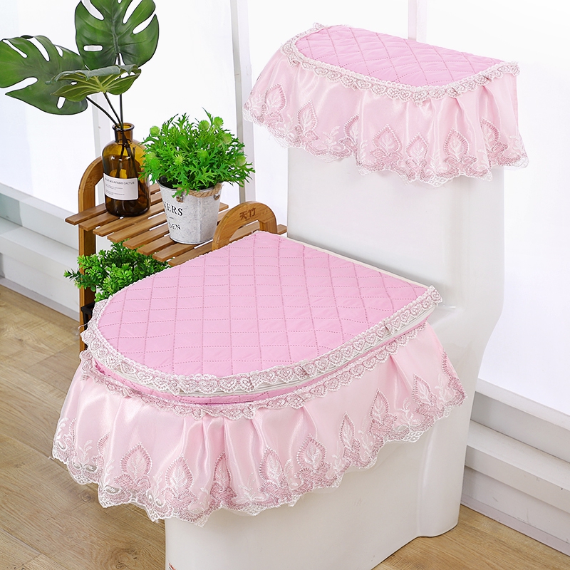 Cloth Art Home Toilet Three sets Double laminated cotton toilet jacket Chinese style Cushion Collar U Type Toilet