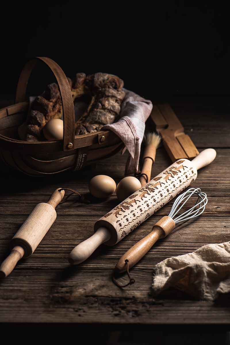 Beech lemon cone carved rolling stick honey stick cyan egg beater log cross pot pad rolling stick wooden handle oil brush white egg beater
