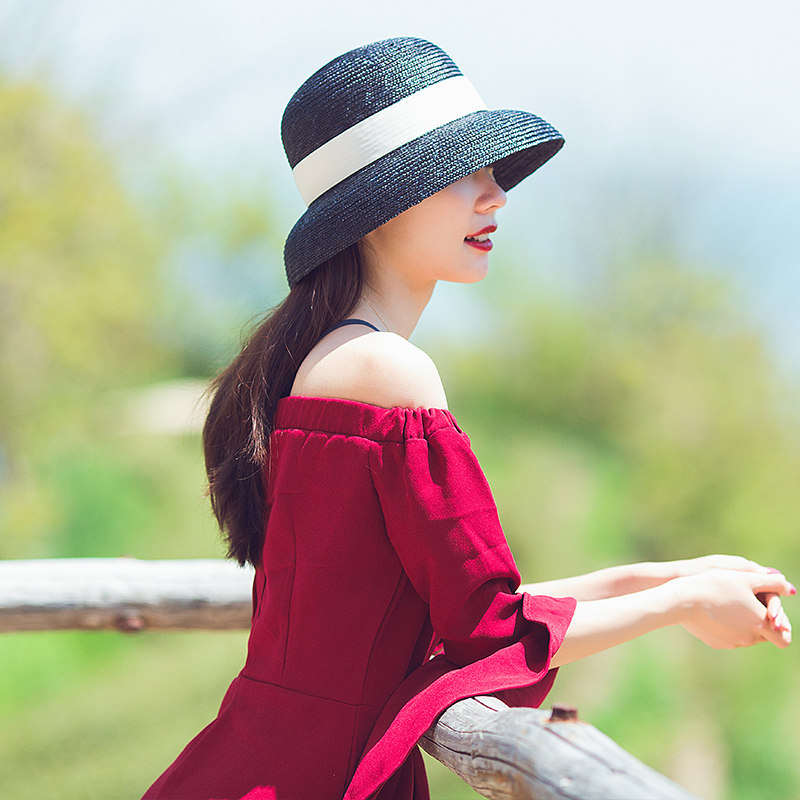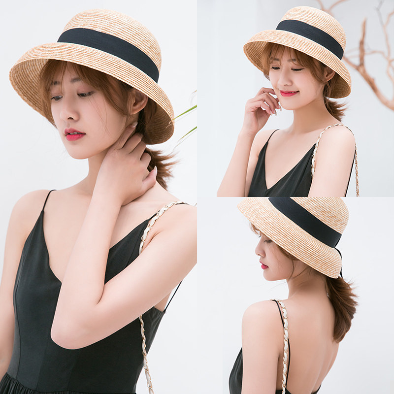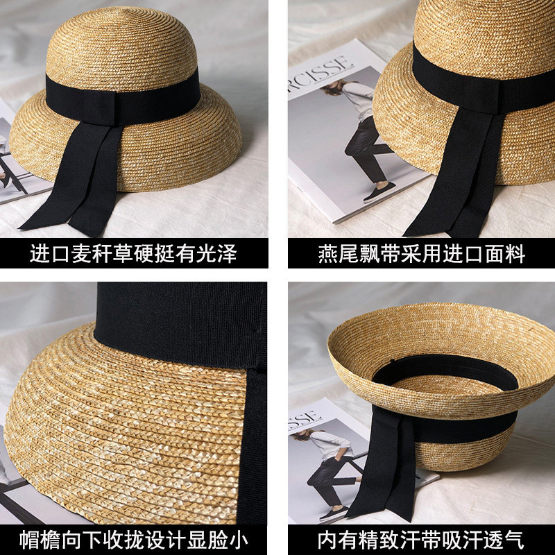 Summer Sins wheat straw fisherman sun-shading hat with small elegant French style retro small gift hat women seaside for a holiday