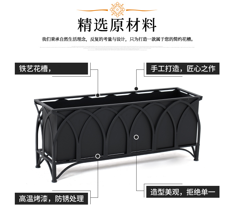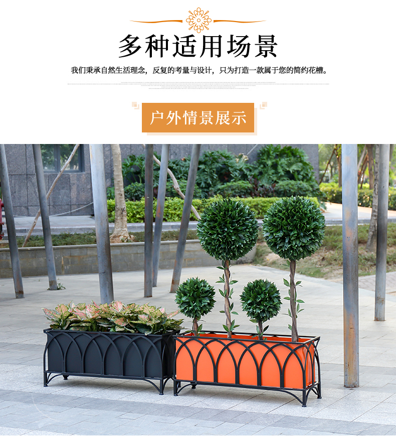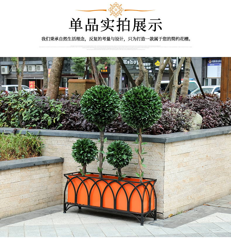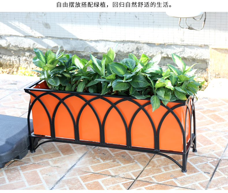 Outdoor Wrought iron flower box Flower trough Flower bed terrace Rectangular outer pendulum fleshy sample house Display center Flower pool combination basin mobile box