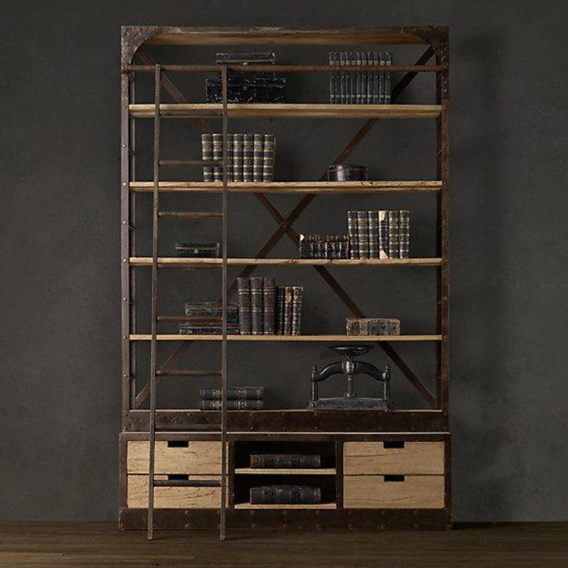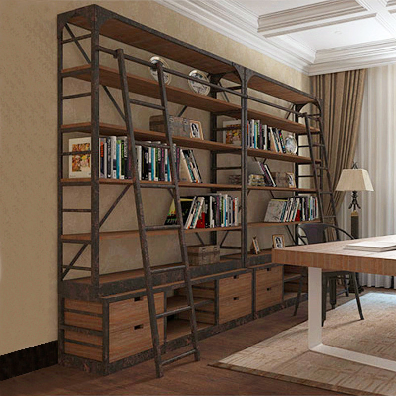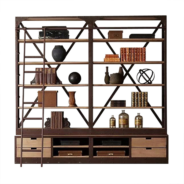 LOFT INDUSTRIAL WIND SHELF Shelf Creative Retro Iron Art Solid Wood Floor Shelf Storage Rack Shelf Separator