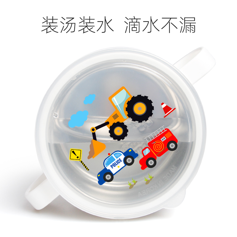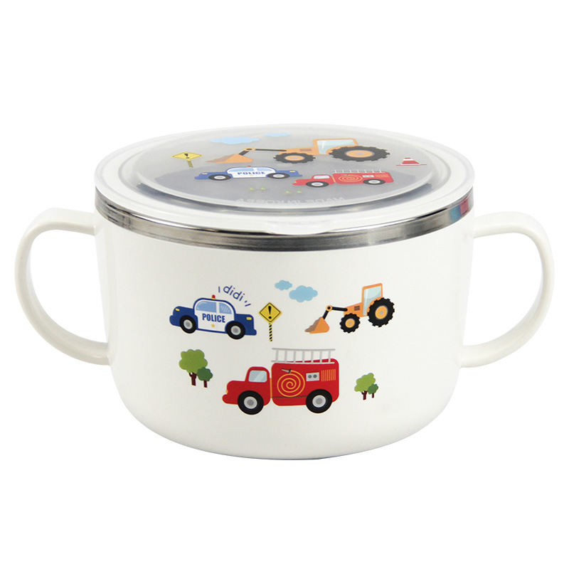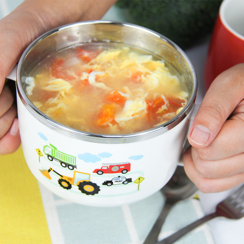 Joint button South Korea imported car soup bowl student tableware children 304 stainless steel anti-hot anti-drop with lid Rice Bowl