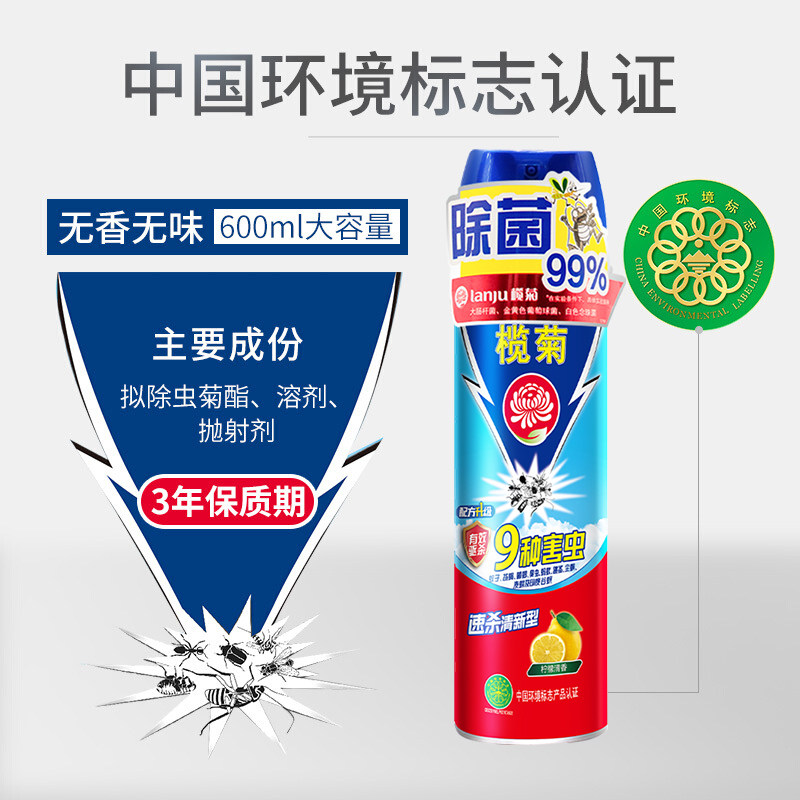 Lanju insecticide 600ml insecticidal artifact mosquito exterminating fly cockroach ant fleas household sterilization aerosol