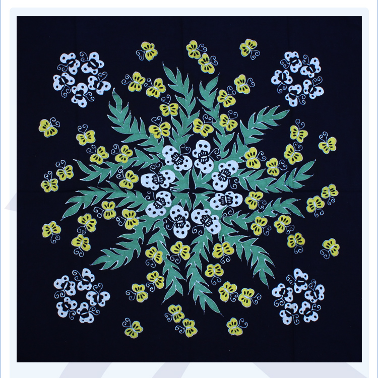 Guizhou Miao handmade batik painting wall hanging small square tablecloth 60cm pomegranate butterfly flower ethnic style hotel decoration painting