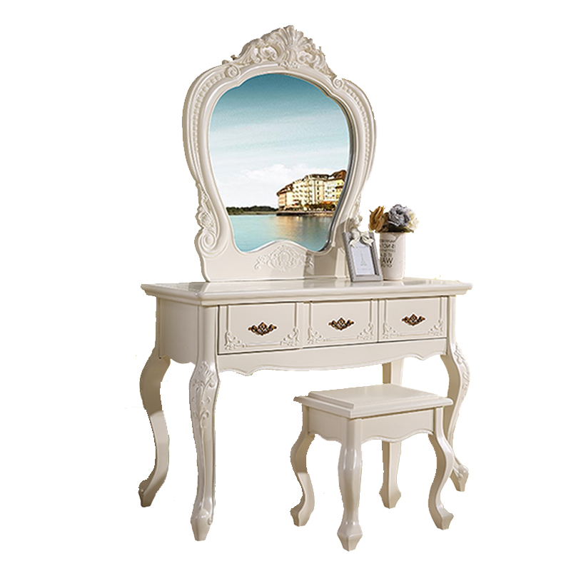 European style solid wood dressing table White luxury carved with makeup mirror makeup stool Assembly makeup table Multi-functional master bedroom