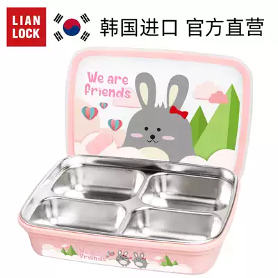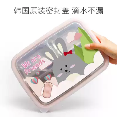 Joint button South Korea imported primary school students stainless steel lunch box lunch box female pink cartoon children's dinner plate with lid
