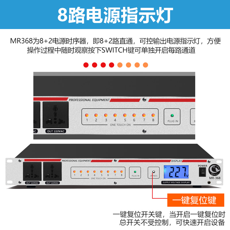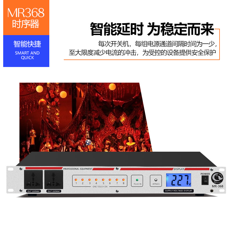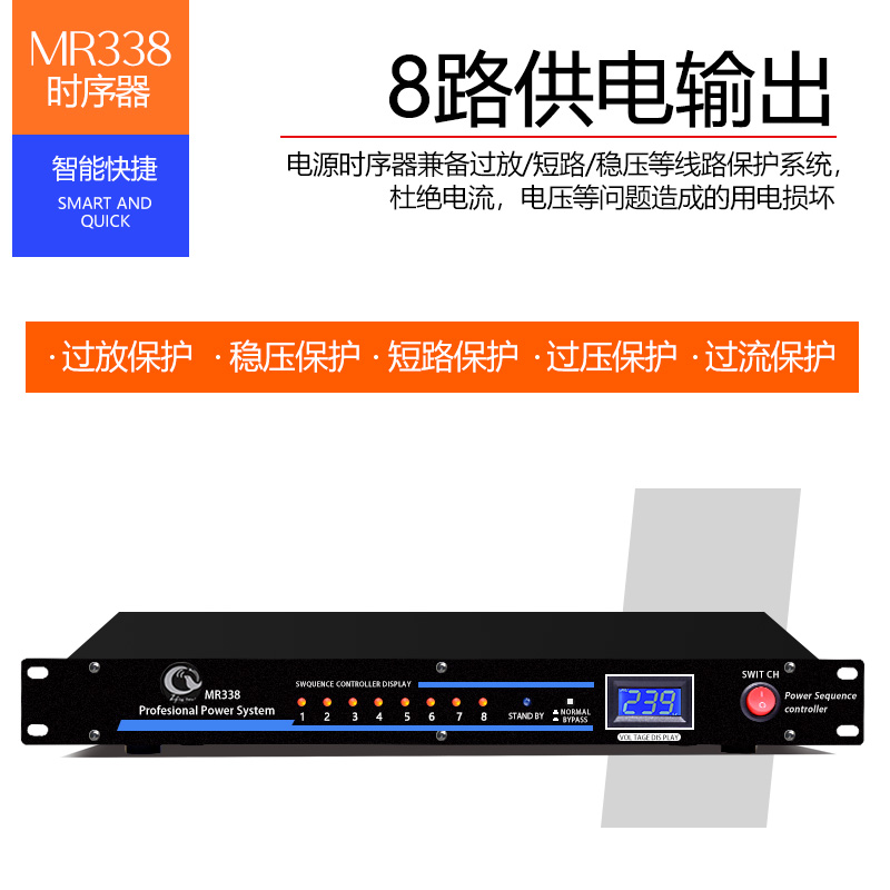 Professional 8-way stage performance conference room power management timing sequencer with filter display voltage protector