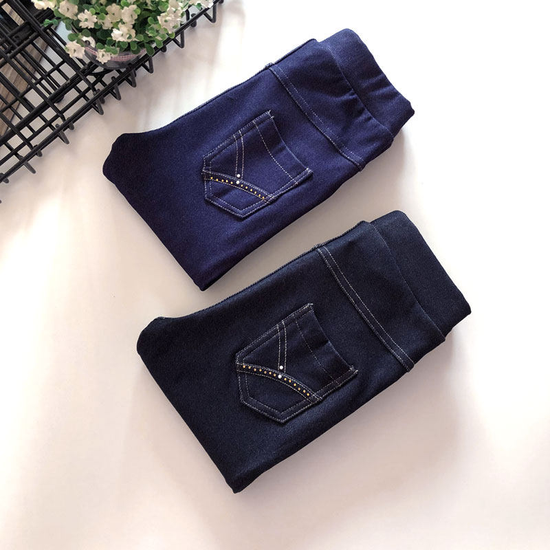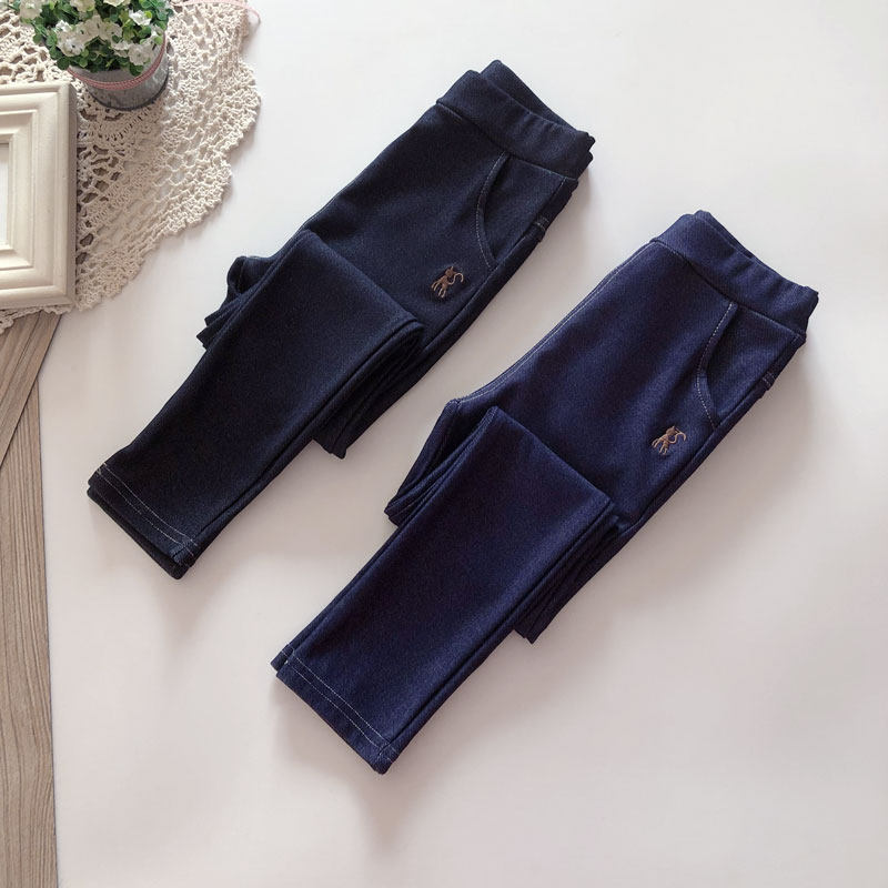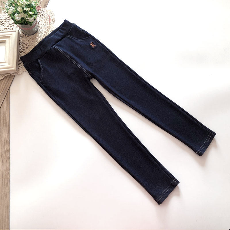 Girl Inside Hitch Pants Spring Autumn spring Mid-Autumn Festival Children's sashimi Elastic Knit Baby Imitation Denim 100 lap length pants