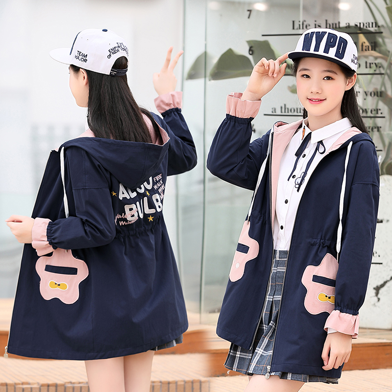 Junior high school students cute coat female Korean version loose student wild 2019 popular new spring and autumn long version windbreaker