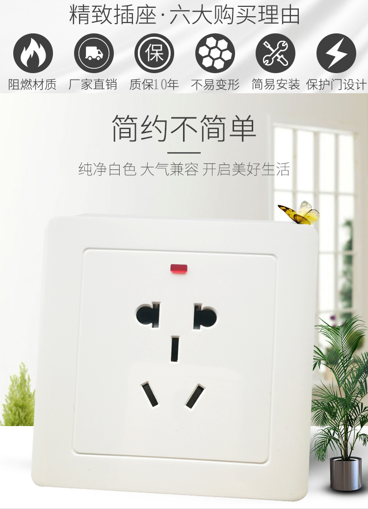 Type 86 dark five - hole with indicator light socket EV charging pile small five - hole socket with LED lights socket
