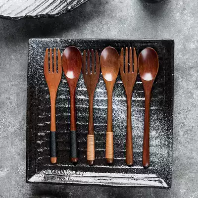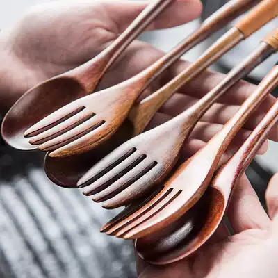 Wooden spoon Japanese two-piece household fork spoon set set convenient wooden tableware for eating Japanese cute fork