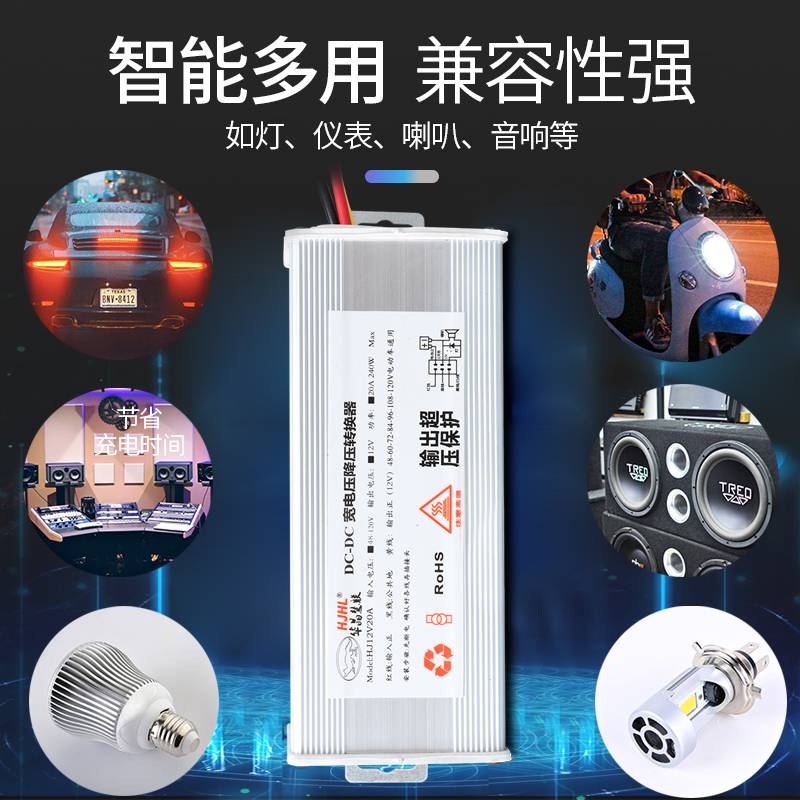 Electric battery 23 wheeler Hucrystal high-power DC converter 48607296120V turns 12V20A240W universal