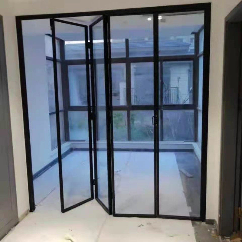 Trackless balcony folding door Very narrow frame living room titanium magnesium alloy glass partition Home kitchen sliding door sliding door