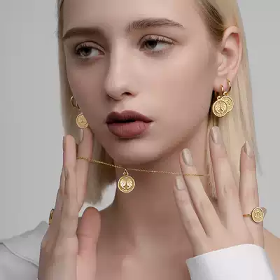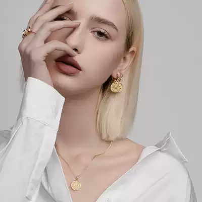 HEFANG He Fang jewelry Constellation gold coin earrings Liu Yuxin with 925 sterling silver women temperament earrings ear needle
