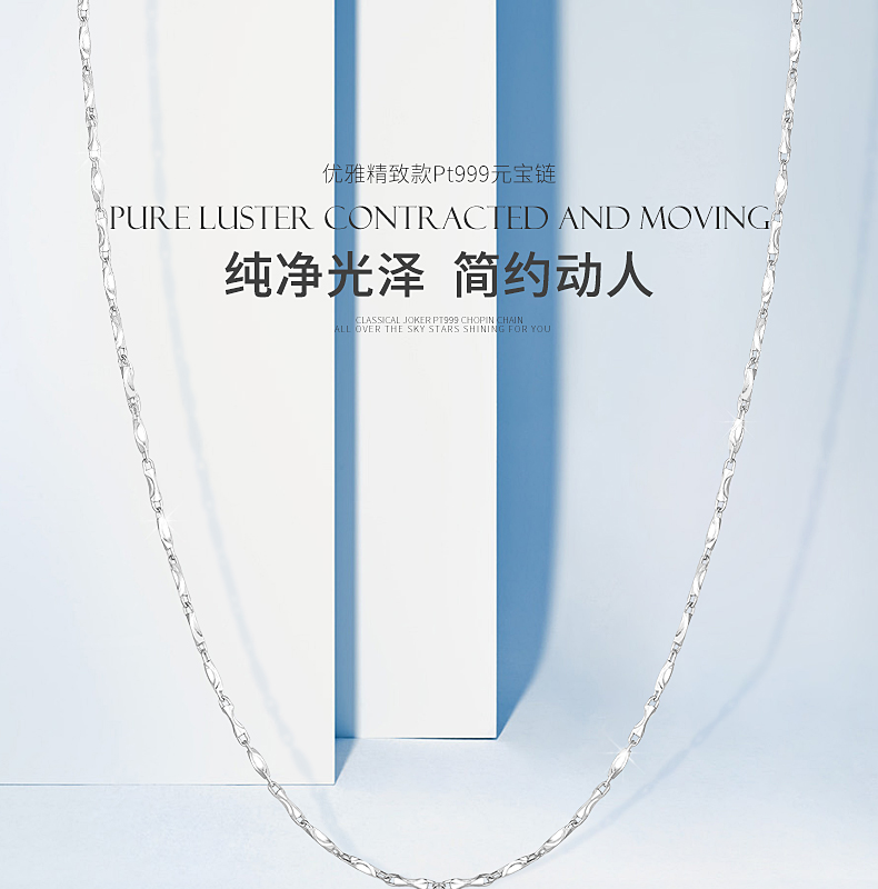 Lifetime warranty pt999 platinum necklace yuanbao chain women's platinum pendant with chain wild men's Jane Ai