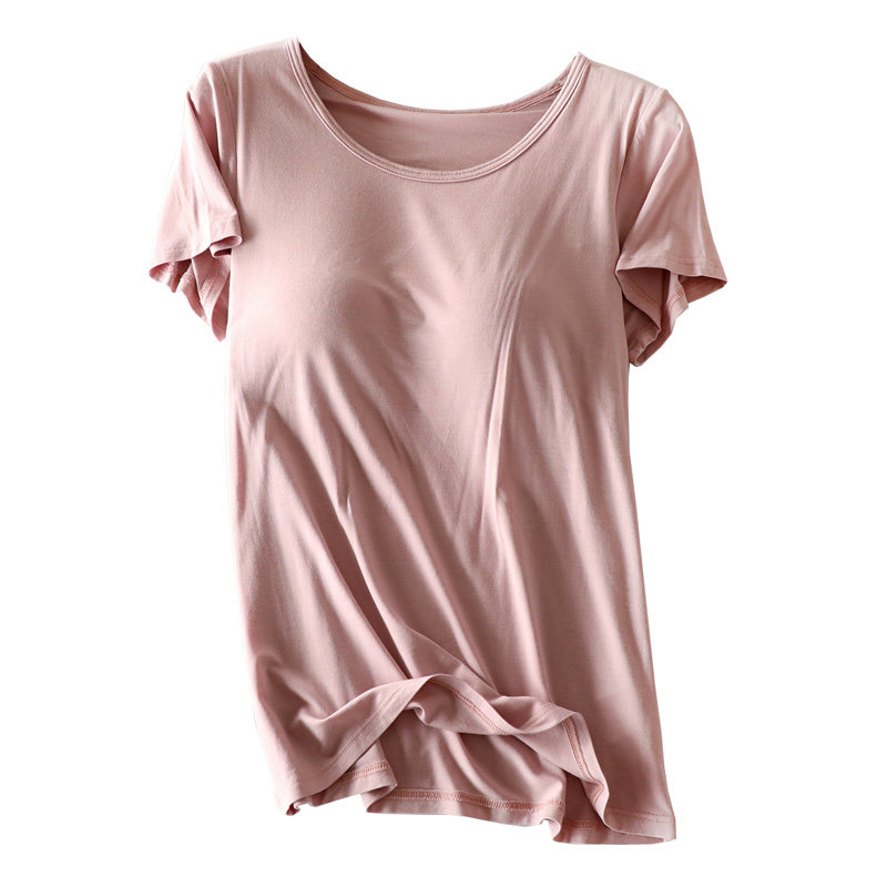 Modal short-sleeved T-shirt with chest pad Women's summer rimless bra cup one-piece outer wear half-sleeve large size pajamas