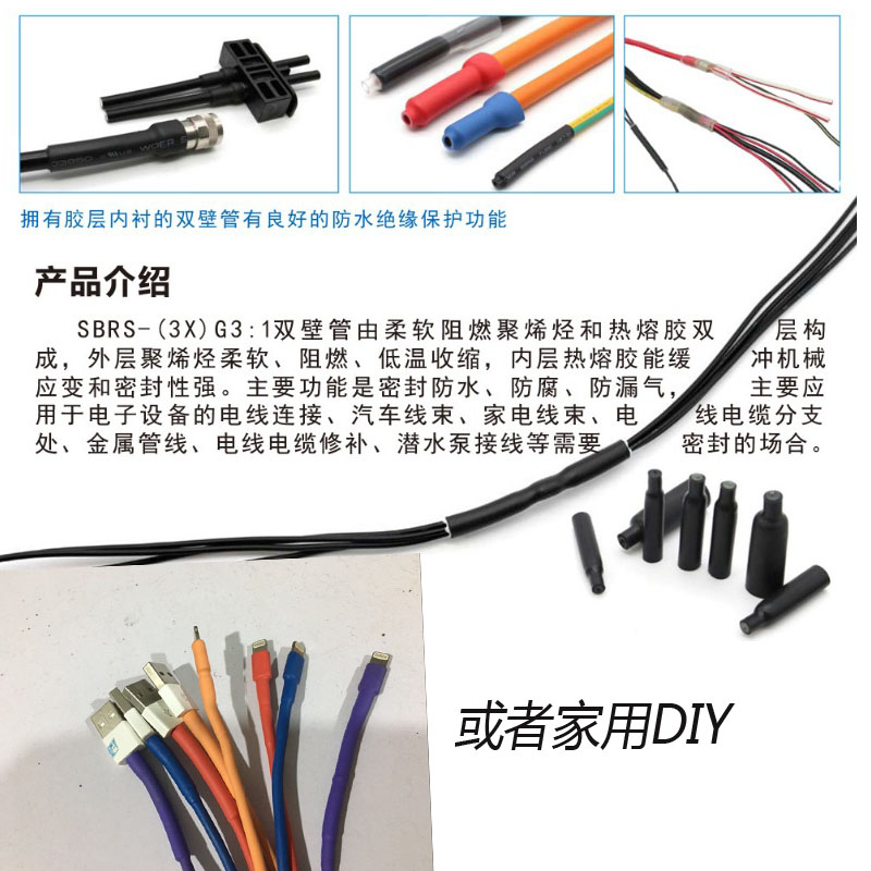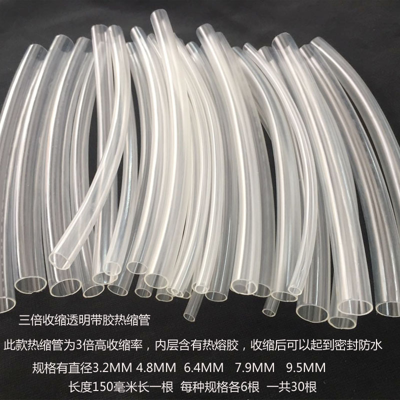 Triple shrinkable adhesive insulated heat shrinkable tube sleeve Data line repair thickened transparent color shrinkable tube set