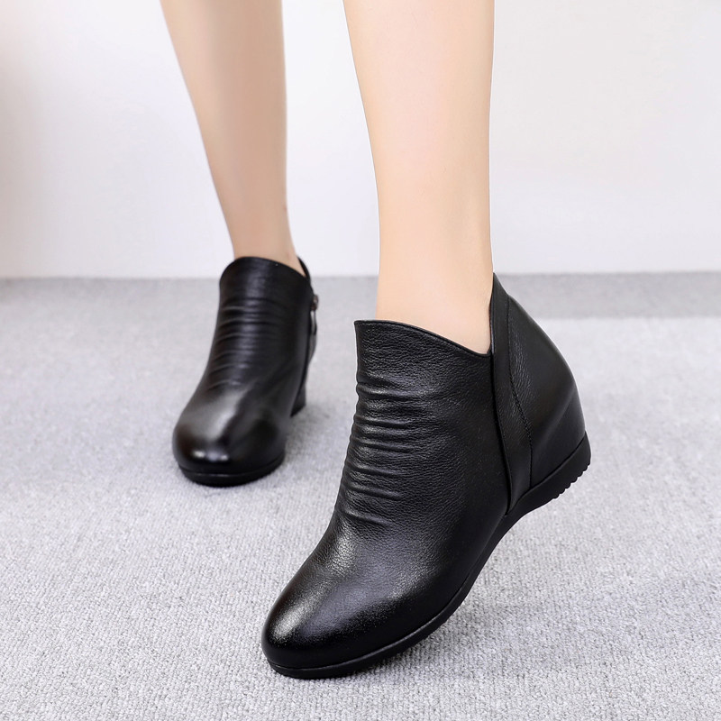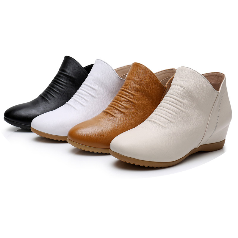 2021 Spring and Autumn Leather Flat Boots Casual Inner HeightEnssed Women's Boots Large Size Soft-Soled Women's Shoes Short Barrel Full Cowhide Single Boots