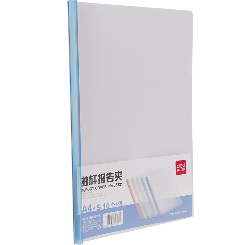 deli 10 A4 color transparent pull rod folder draw bar report clip color mix 33321