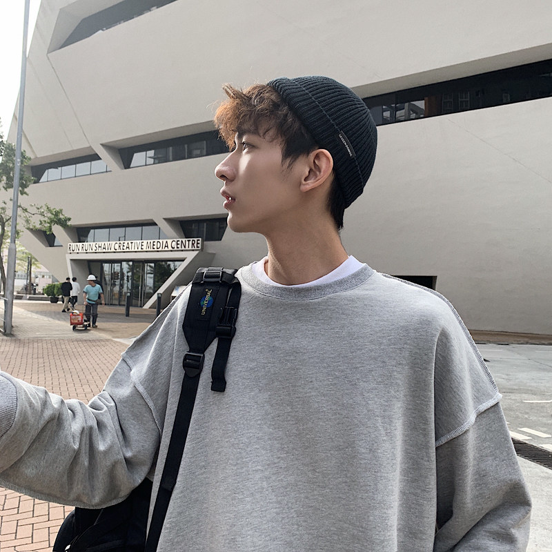 Spring and autumn men's loose couple coat oversize large size Korean version simple solid color casual pullover casual top men's trend
