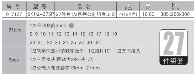 JETECH Metric Sleeve Set 12 5mm Series 27 Set SK1 2-27SP