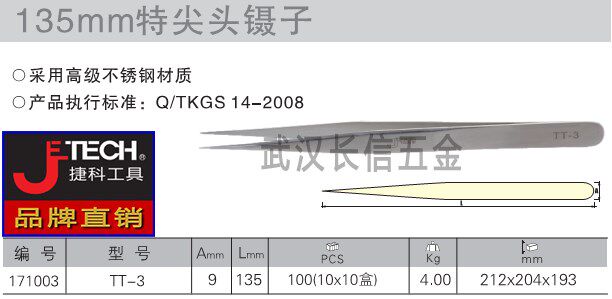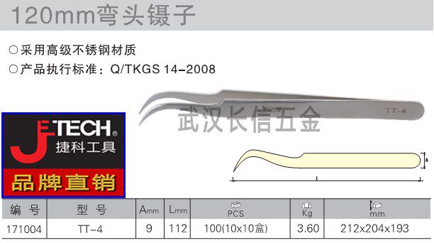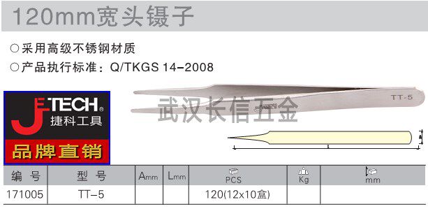 Jieke JETECH stainless steel tweezers electronic micro-special tip elbow wide-head tweezers TT-1 2 3 4 5 6