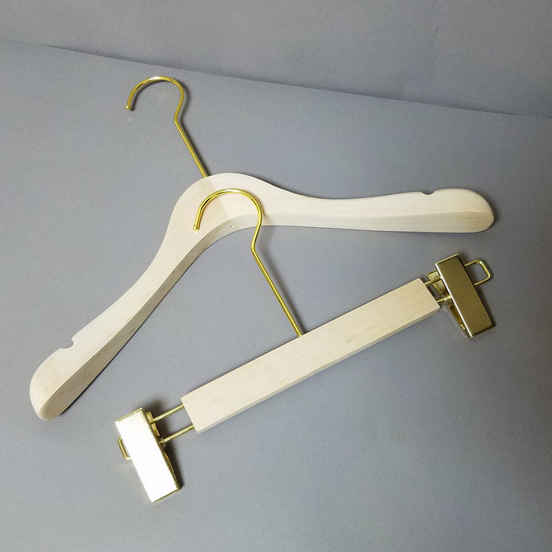 Long hook hanger original wood color solid wood non-slip hanger Korean version gold hook female clothes hanger clothing shop wide shoulder wood hanger