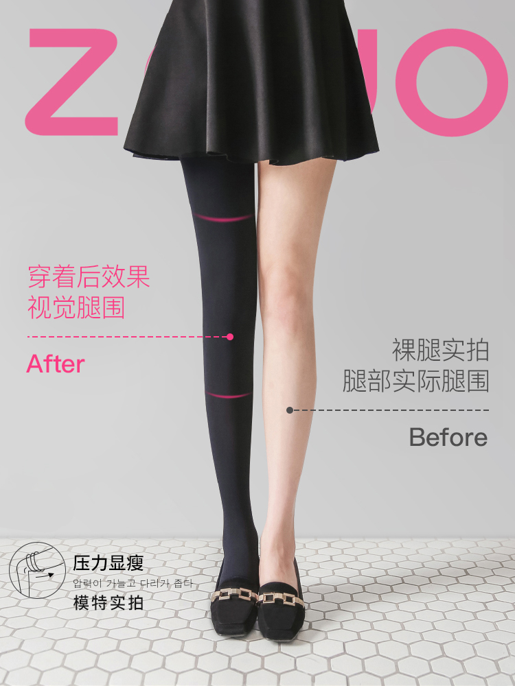 South Korea's ZAUO bottoming pantyhose autumn and winter thickened plus velvet to keep warm beautiful legs thin legs pressure socks black female 800D