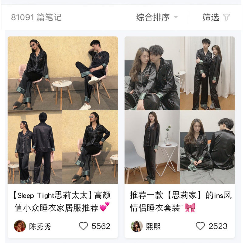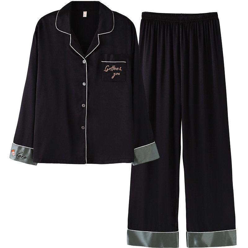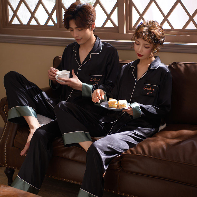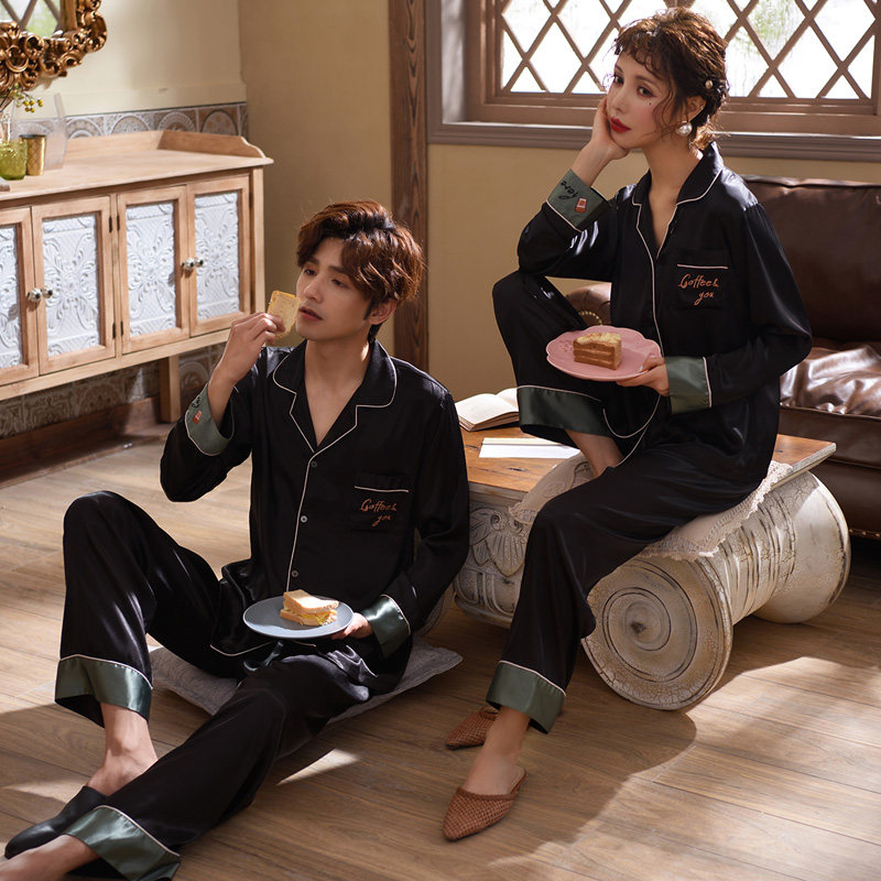 Mrs Sili couple pajamas summer ice silk women's spring and autumn models net red long-sleeved trousers sexy men's home clothes