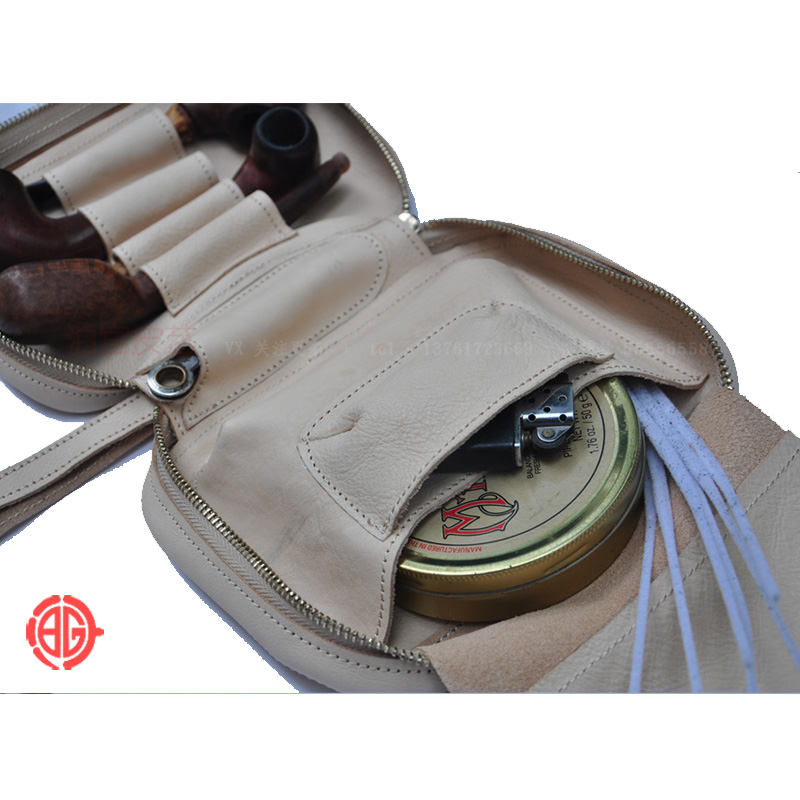 Pipe bag Leather portable pipe storage bag Zipper portable tobacco bag Pipe bag Large capacity handmade park palace