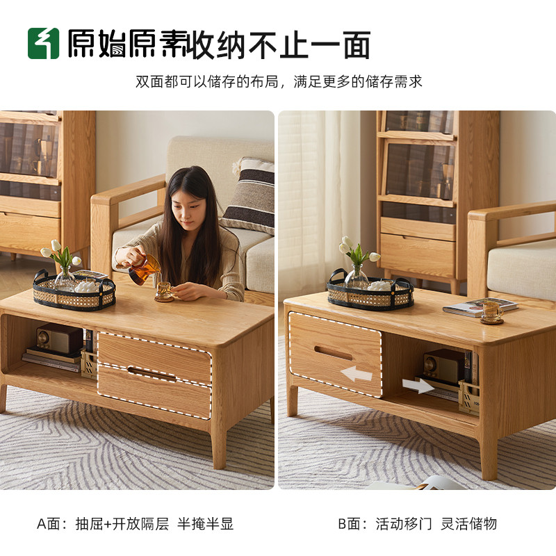 Original element solid wood coffee table Nordic modern minimalist living room oak furniture TV cabinet combination tea table A5072